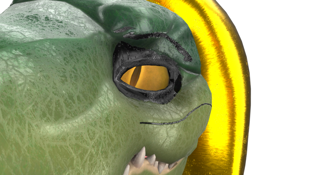 - Modified body texture that includes a hairy chest, rear, and feet as well as nipples and an overall greener crocodile